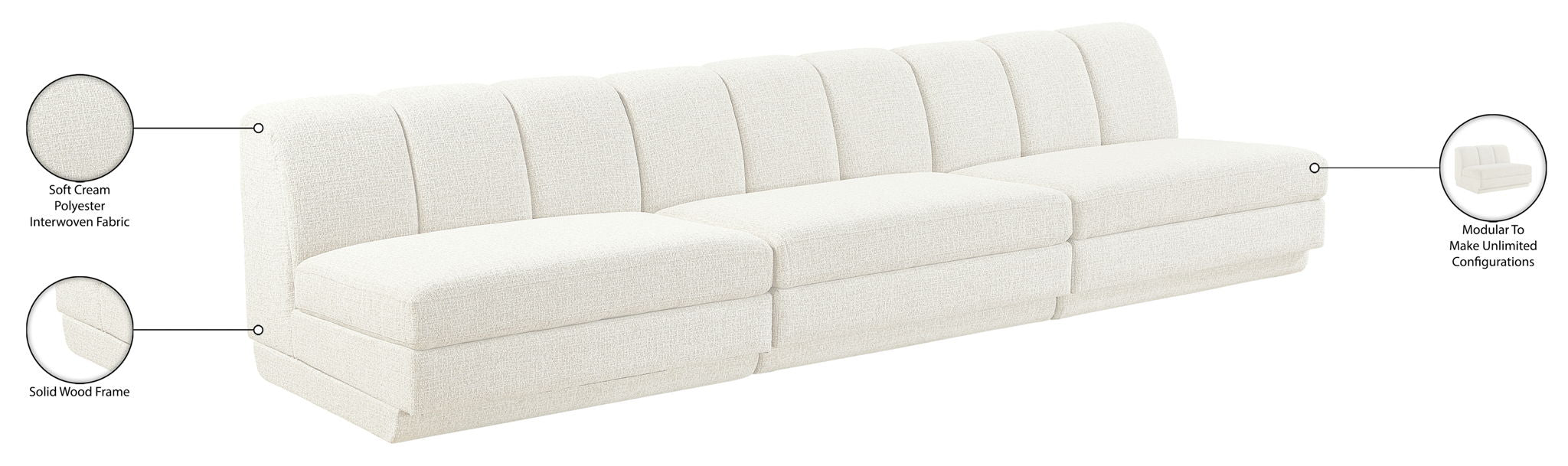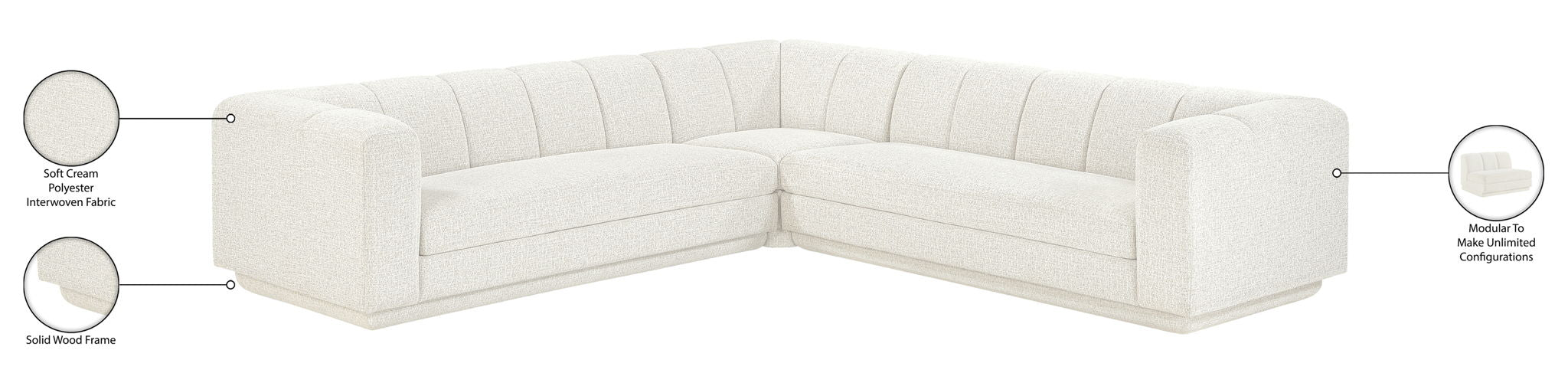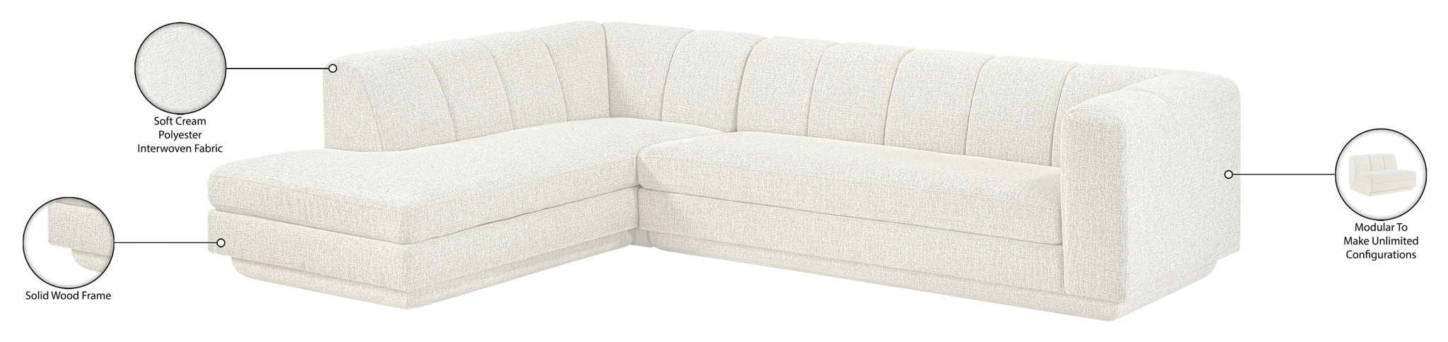 Modari - Fabric Upholstered 3 Piece Modular Sofa - Cream