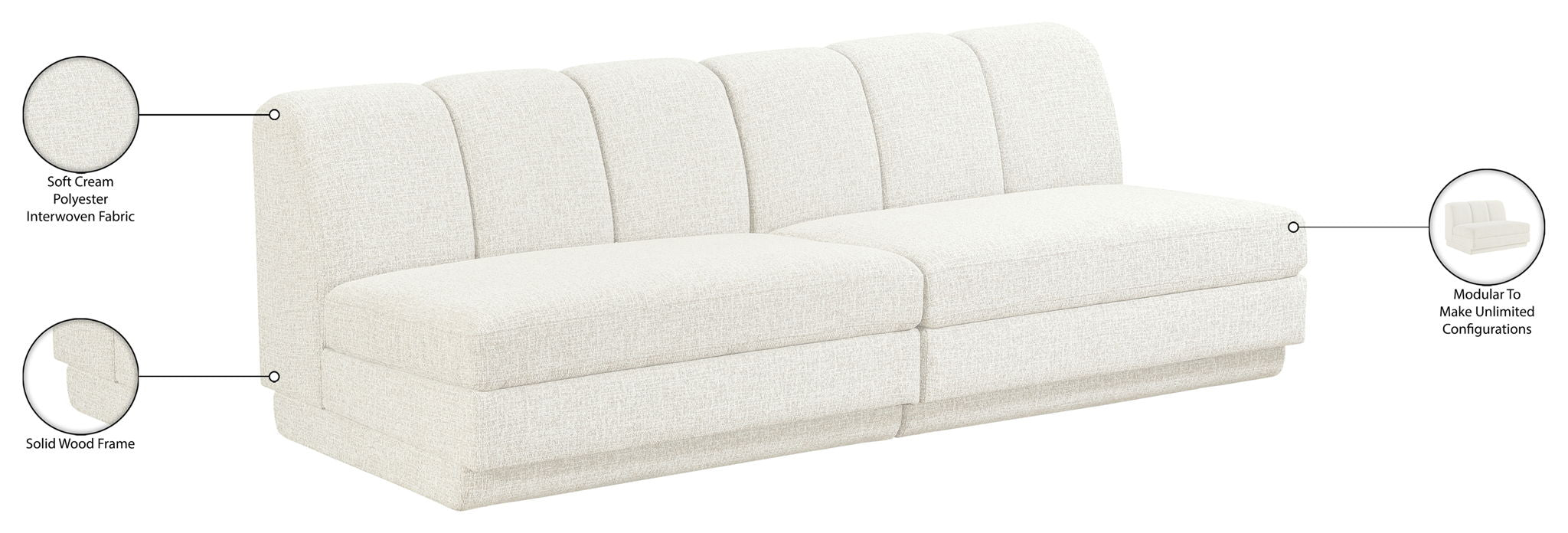 Modari - Fabric Upholstered 2 Piece Modular Sofa - Cream