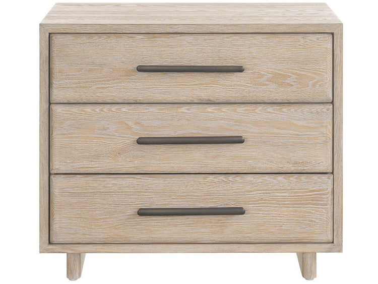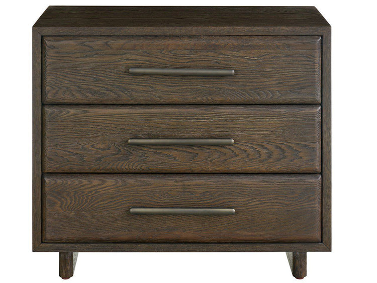 The Three Drawer Nightstand offers bedside functionality with a bold, modern edge. Its finish complements the clean lines and sleek hardware, providing a sophisticated and practical addition to your sleep sanctuary.