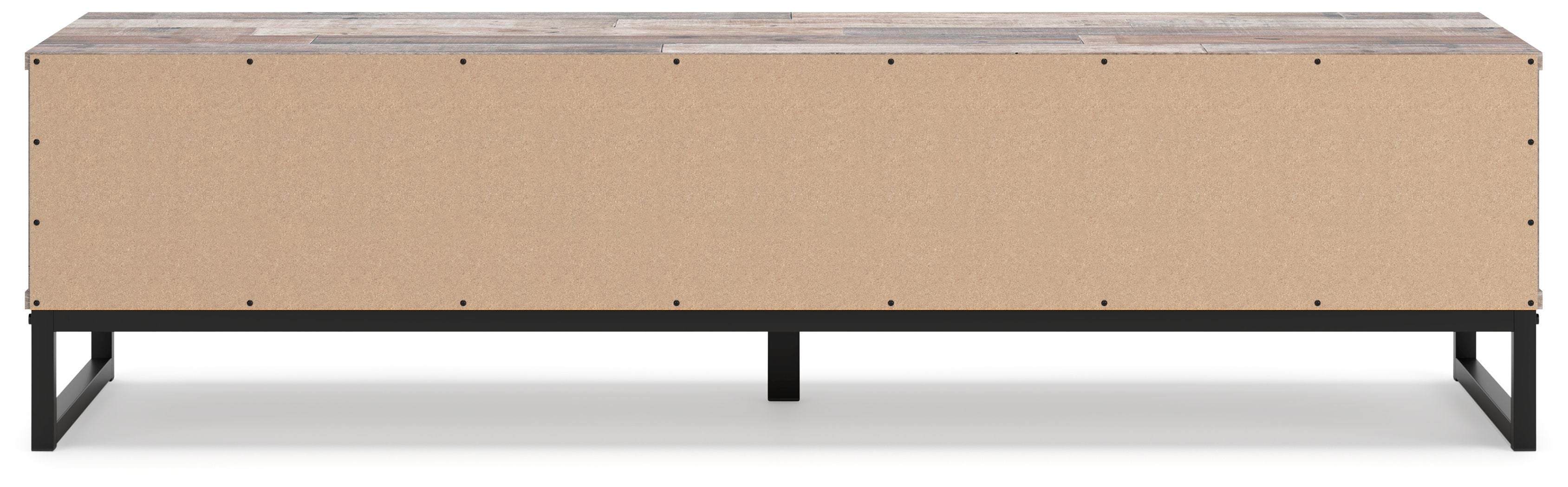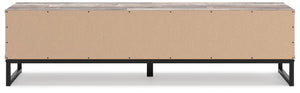 Butcher block, whitewash finish over replicated Pine grain with authentic touch. Contemporary handles in a dark pewter colored finish. Spacious drawers with ball bearing glides offer a smooth opening and closing of the drawer. Vinyl wrapped drawer sides and back for extra durability.