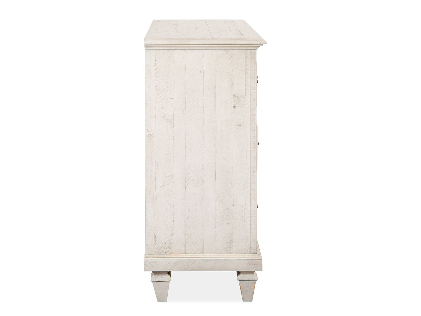 Inspired by the architecture and landscape of California Wine Country and the Newport bedroom collection exudes the ambience of laid-back luxury. Crafted of high-low Pine and Pine Solids and the soft Alabaster finish and Brushed Pewter hardware mix effortlessly with graceful turned legs and designer details to create a look that is bold yet inviting. Adding a casual and coastal resort flair and Shutter wood doors are used on select pieces. Crisp and updated and Newport promises long-lasting design and sturdy construction for any relaxed setting.