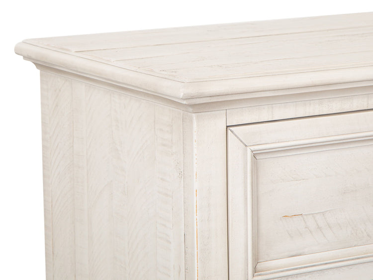 Inspired by the architecture and landscape of California Wine Country and the Newport bedroom collection exudes the ambience of laid-back luxury. Crafted of high-low Pine and Pine Solids and the soft Alabaster finish and Brushed Pewter hardware mix effortlessly with graceful turned legs and designer details to create a look that is bold yet inviting. Adding a casual and coastal resort flair and Shutter wood doors are used on select pieces. Crisp and updated and Newport promises long-lasting design and sturdy construction for any relaxed setting.