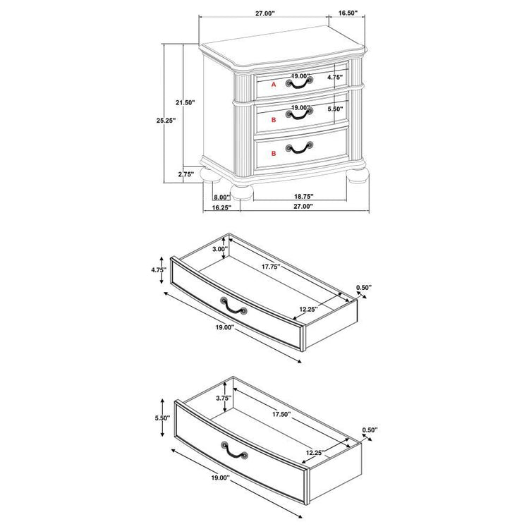 Discover the perfect blend of functionality and elegance with this nightstand, featuring three spacious drawers to keep your essentials organized. The top drawer, lined with soft felt, provides a gentle nest for your delicate items, while ingeniously designed grooves at the back allow for discreet charging cable access, keeping your devices powered and within reach. This nightstand, with its black finish and timeless hardware, is not only a storage solution but a sophisticated addition to your bedroom sanctuary.