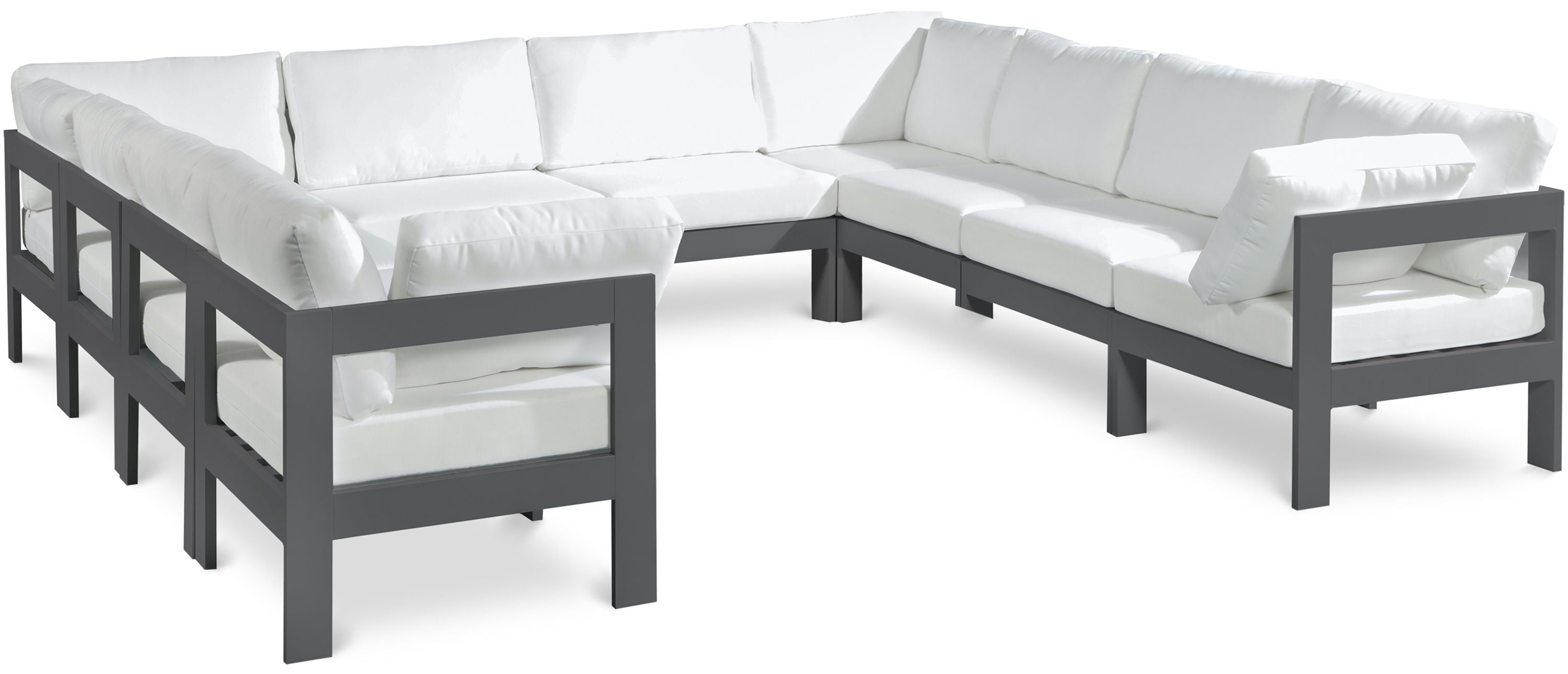 Nizuc - Outdoor Patio 10 Piece Modular Sectional With Gray Frame - White