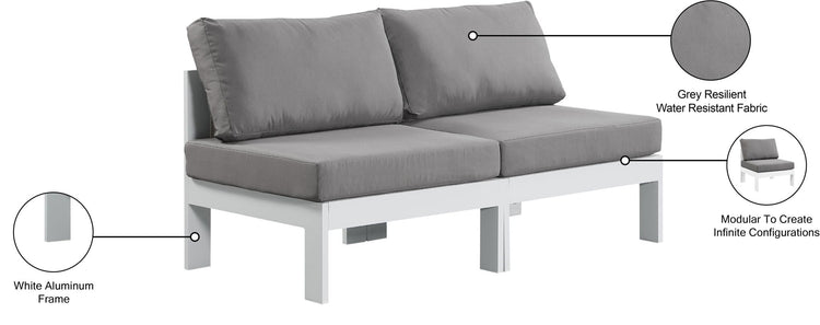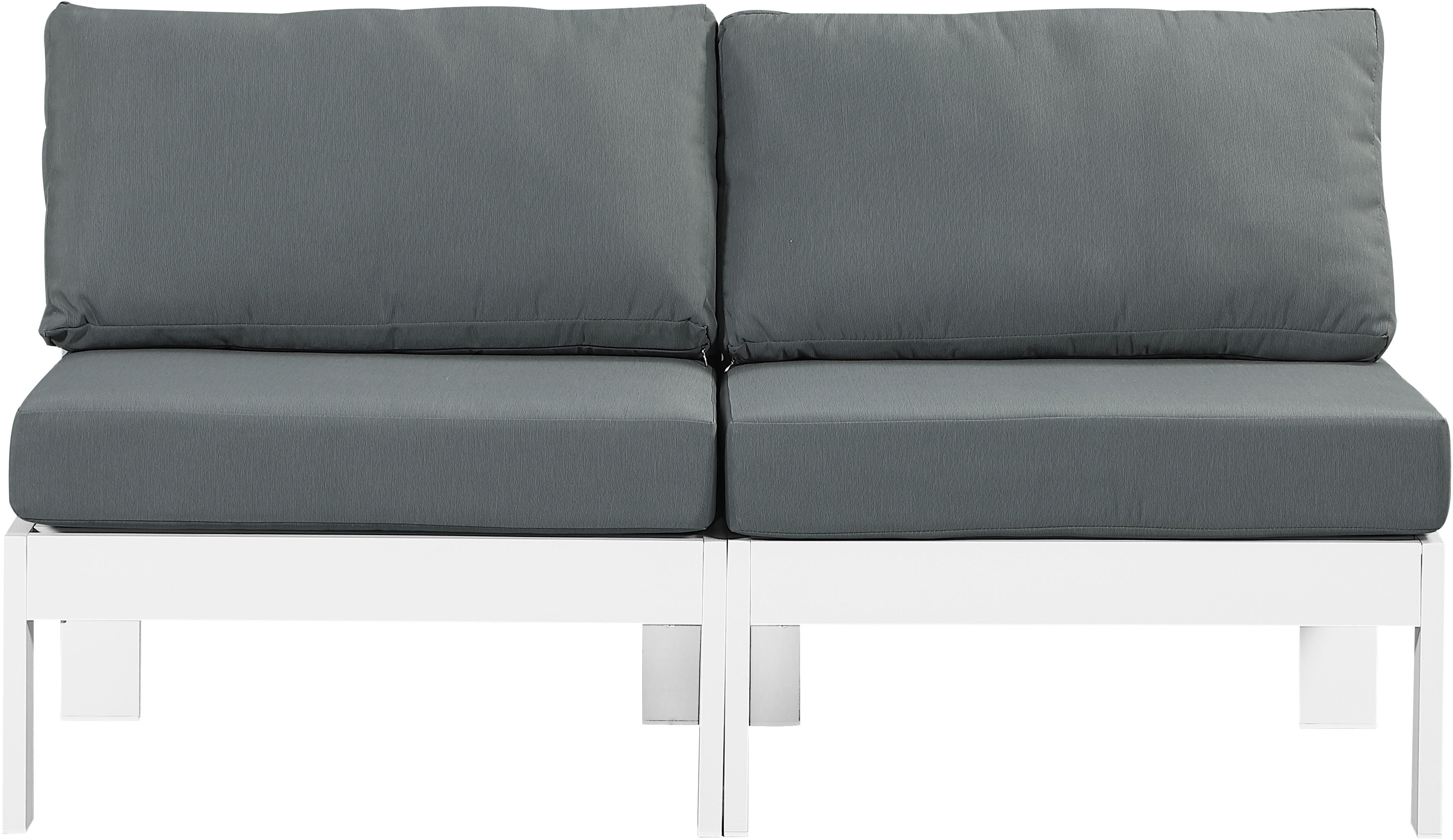 Nizuc - Outdoor Patio 2 Piece Armless Modular Sofa With White Frame - Gray