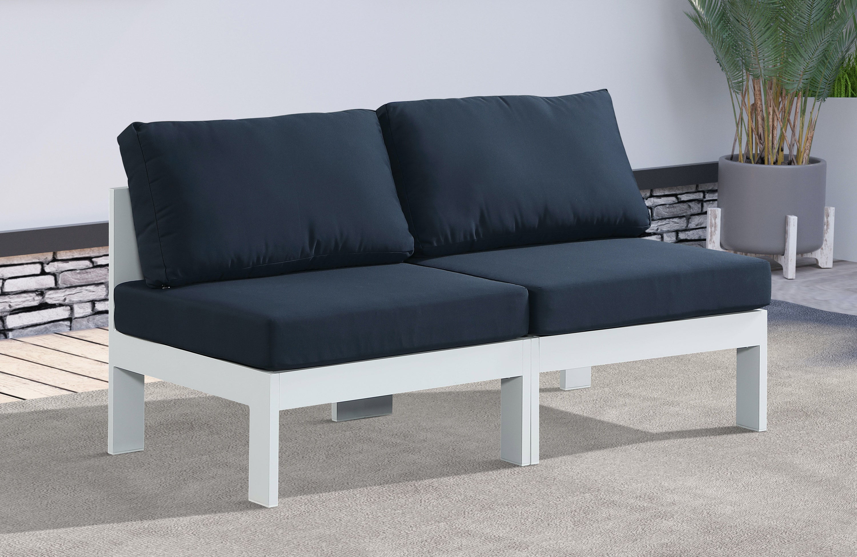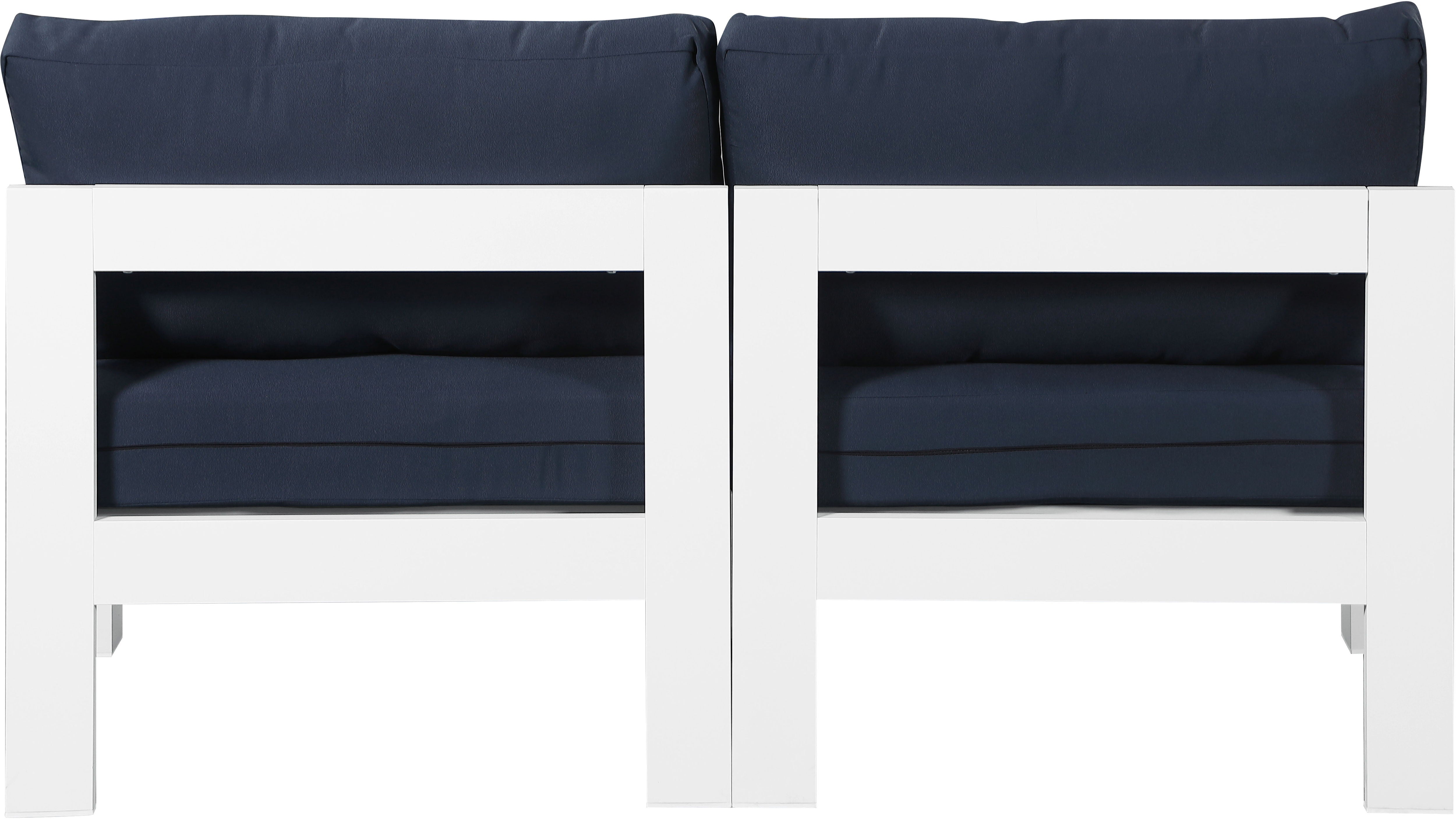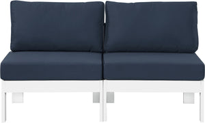 Nizuc - Outdoor Patio 2 Piece Armless Modular Sofa With White Frame - Navy