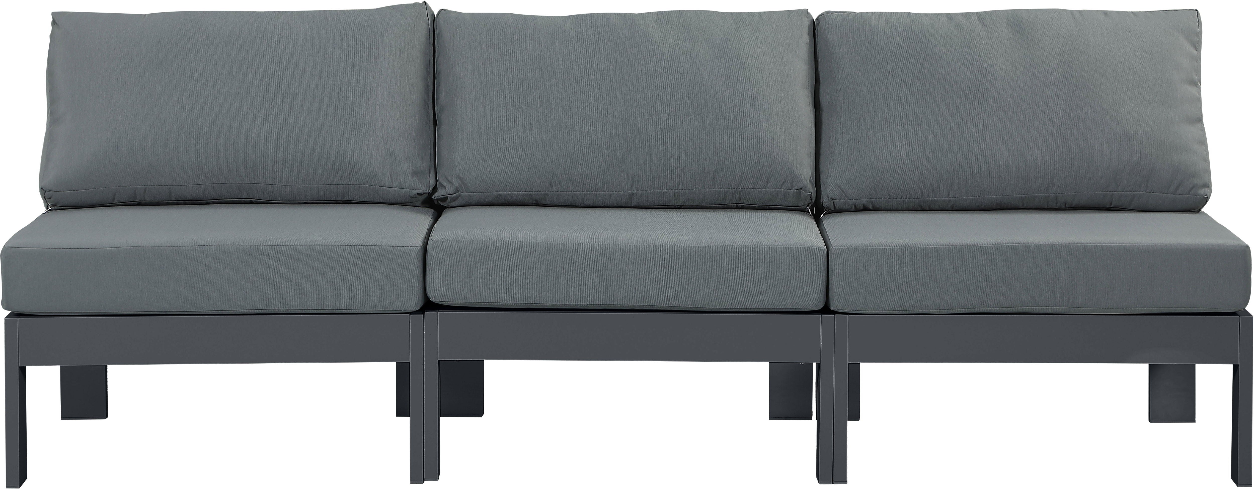 Nizuc - Outdoor Patio 3 Piece Armless Modular Sofa With Gray Frame - Gray
