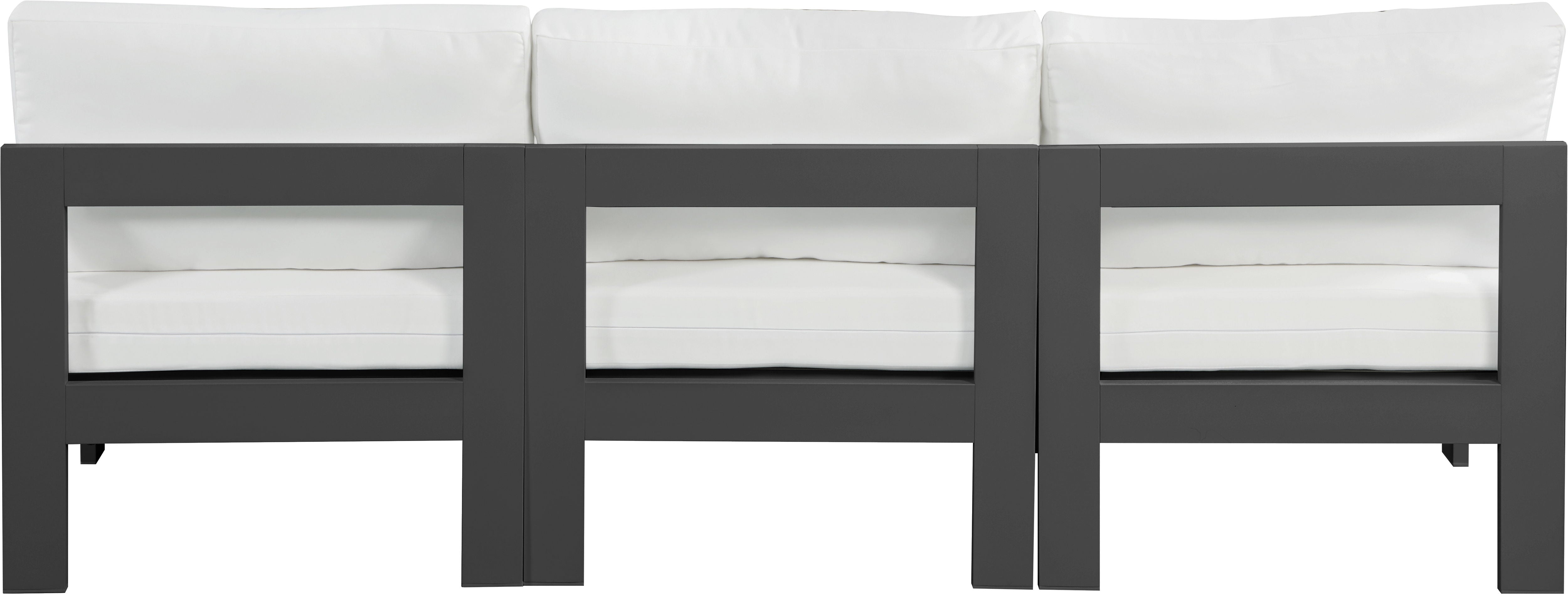 Nizuc - Outdoor Patio 3 Piece Armless Modular Sofa With Gray Frame - White
