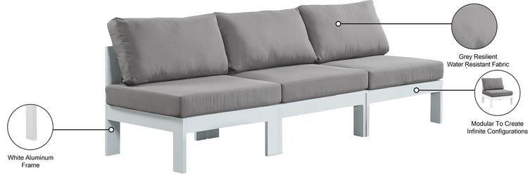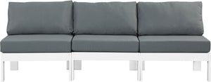 Nizuc - Outdoor Patio 3 Piece Armless Modular Sofa With White Frame - Gray