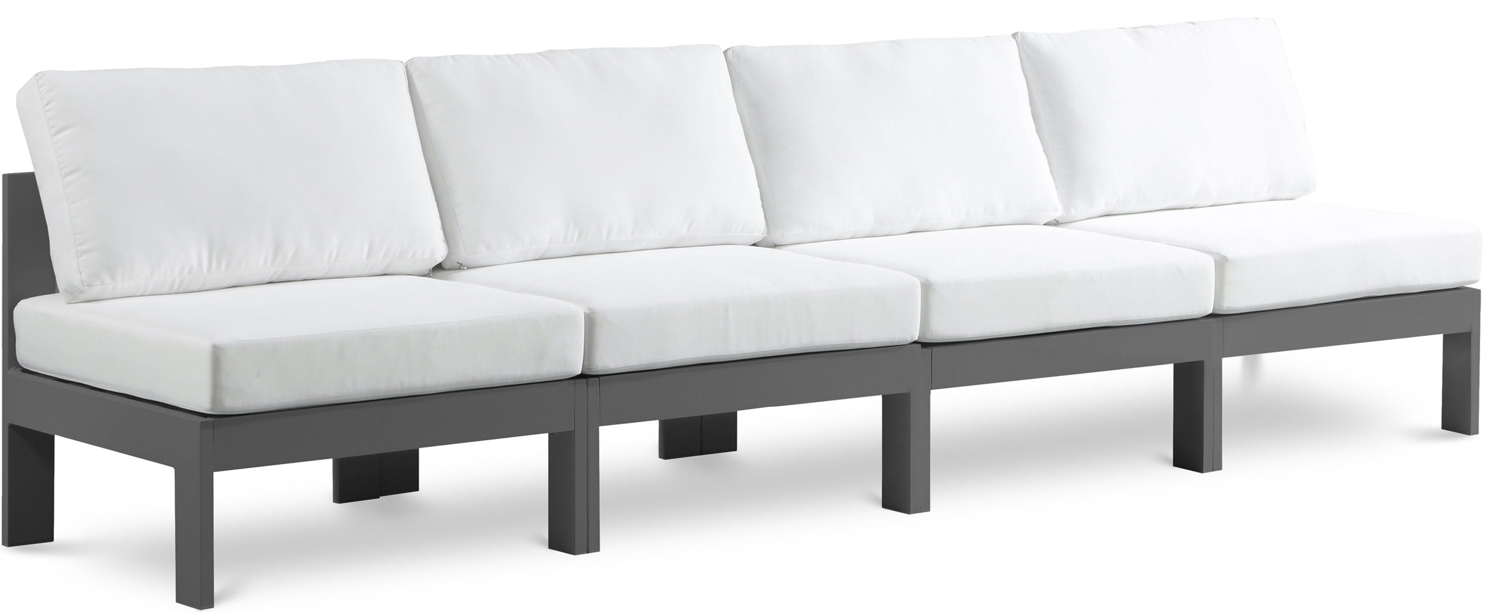 Nizuc - Outdoor Patio 4 Piece Armless Modular Sofa With Gray Frame - White