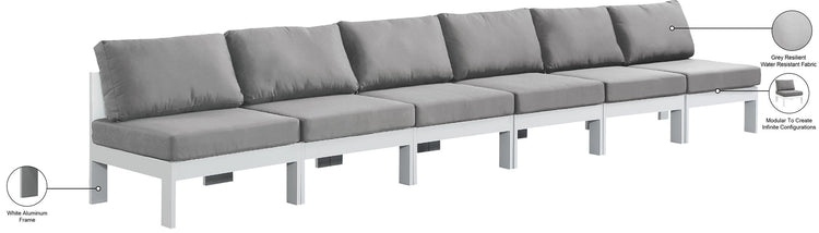 Nizuc - Outdoor Patio 6 Piece Armless Modular Sofa With White Frame - Gray