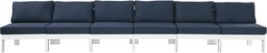 Nizuc - Outdoor Patio 6 Piece Armless Modular Sofa With White Frame - Navy