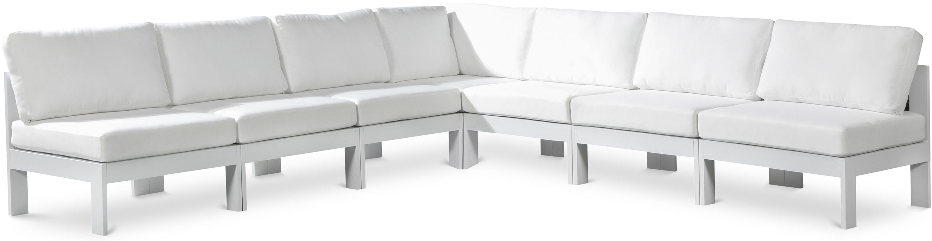 Nizuc - Outdoor Patio 7 Piece Modular Croner Armless Sectional With White Frame - White