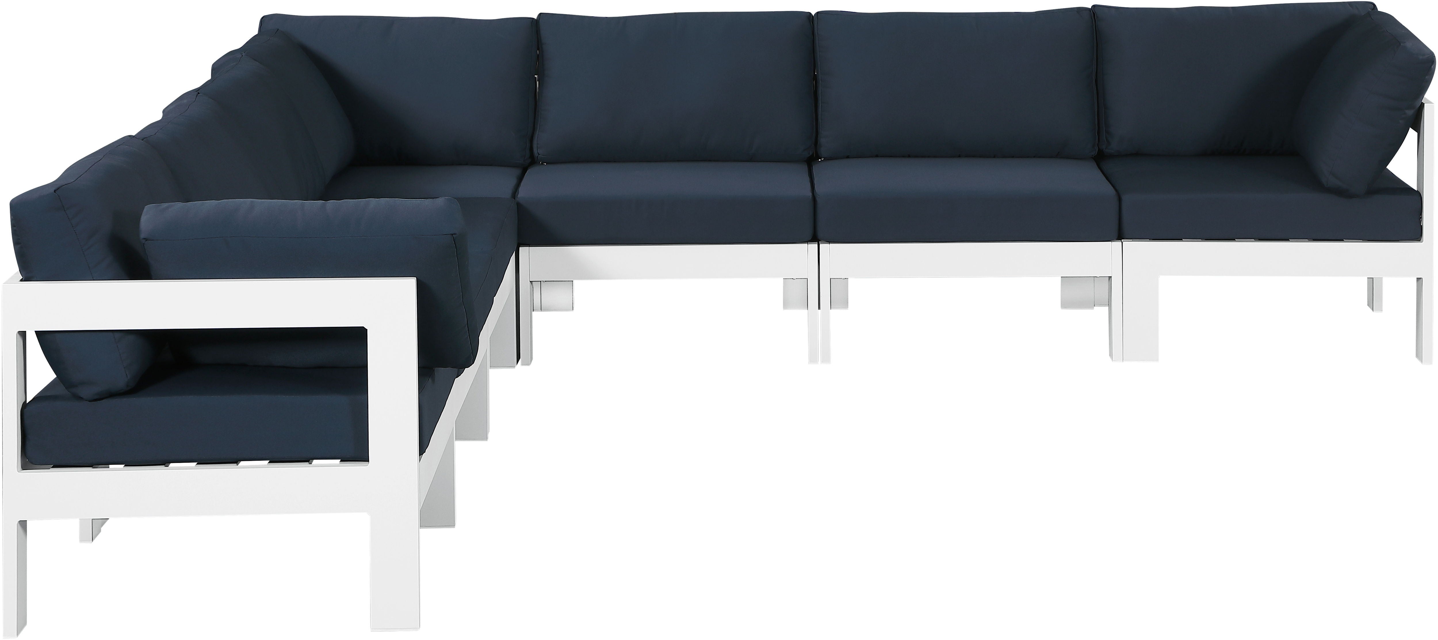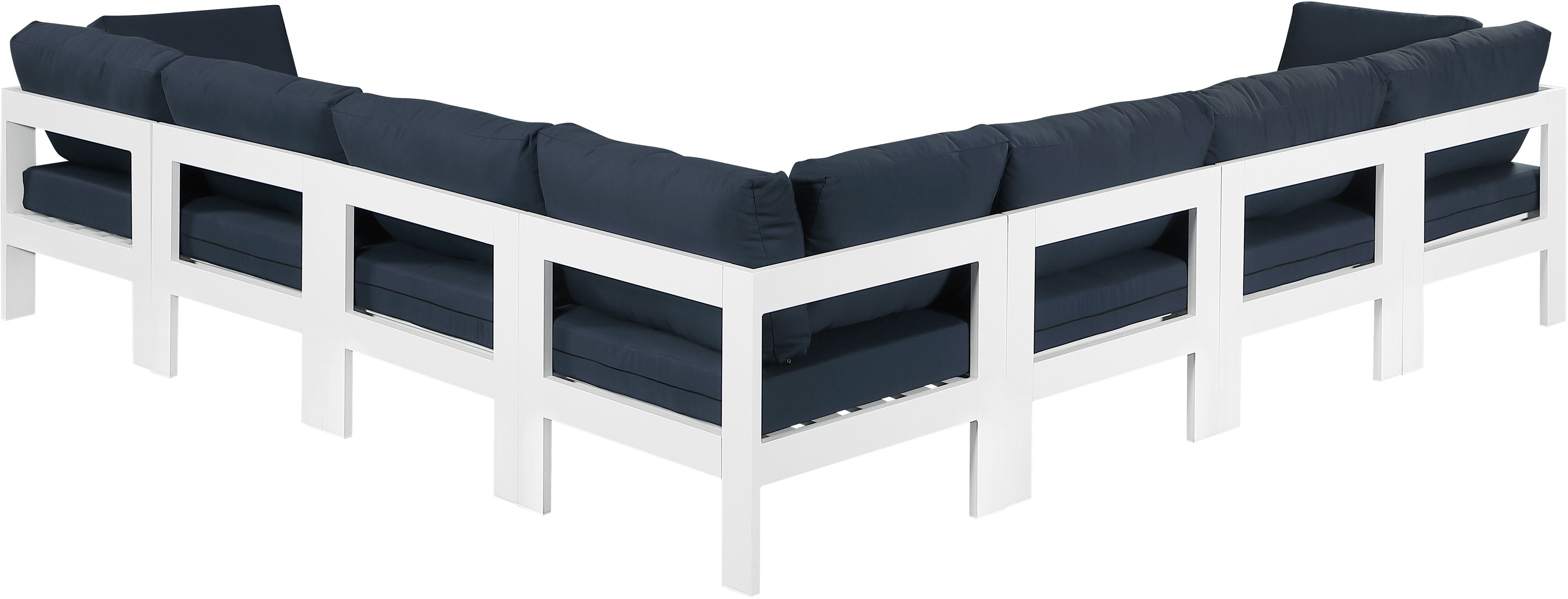 Nizuc - Outdoor Patio 7 Piece Modular Corner Sectional With White Frame - Navy