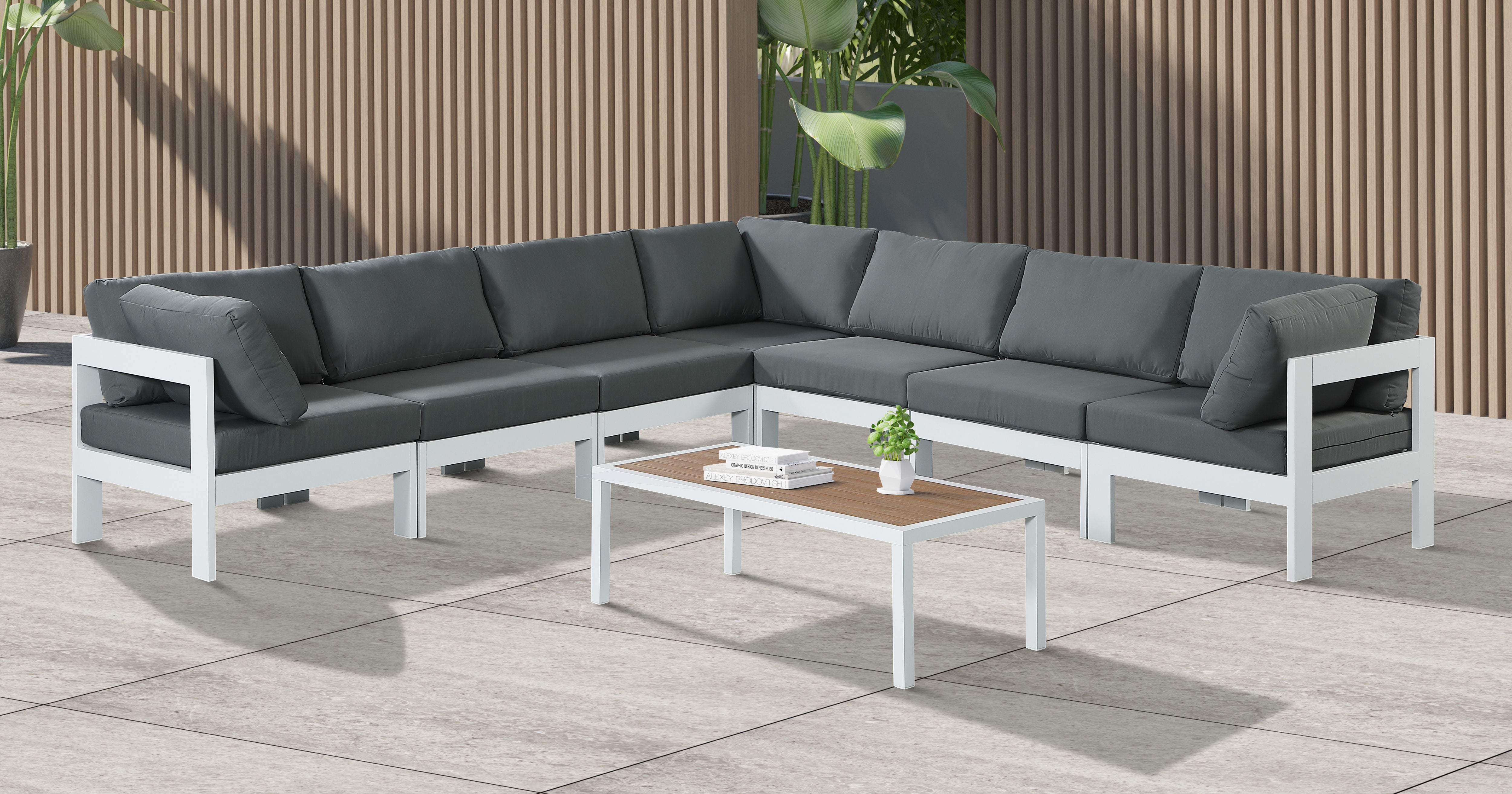 Nizuc - Outdoor Patio 7 Piece Modular Corner Sectional With White Frame - Gray