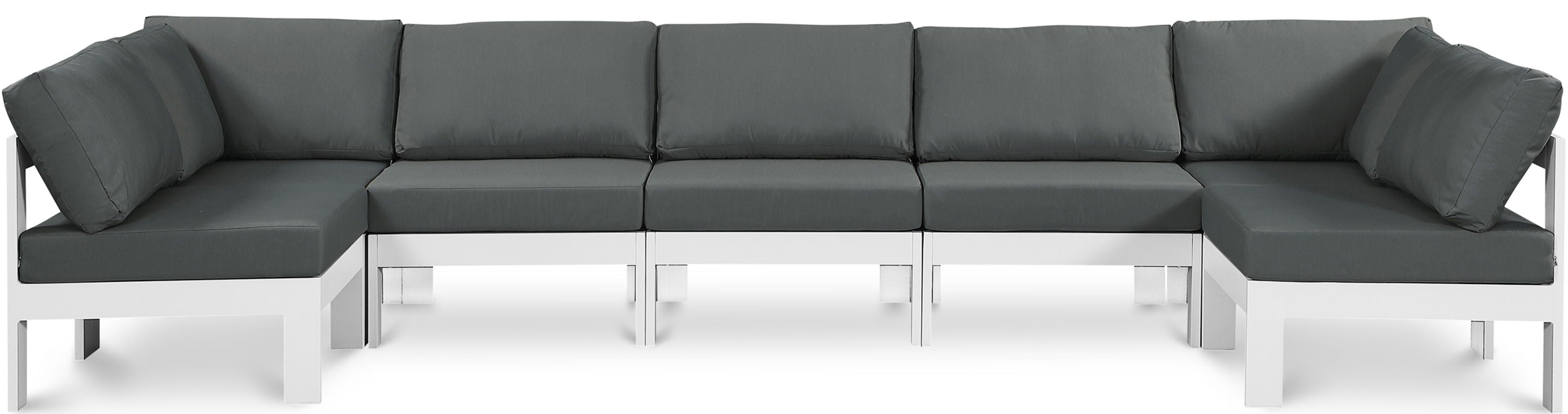 Nizuc - Outdoor Patio 7 Piece Modular Sectional With White Frame - Gray