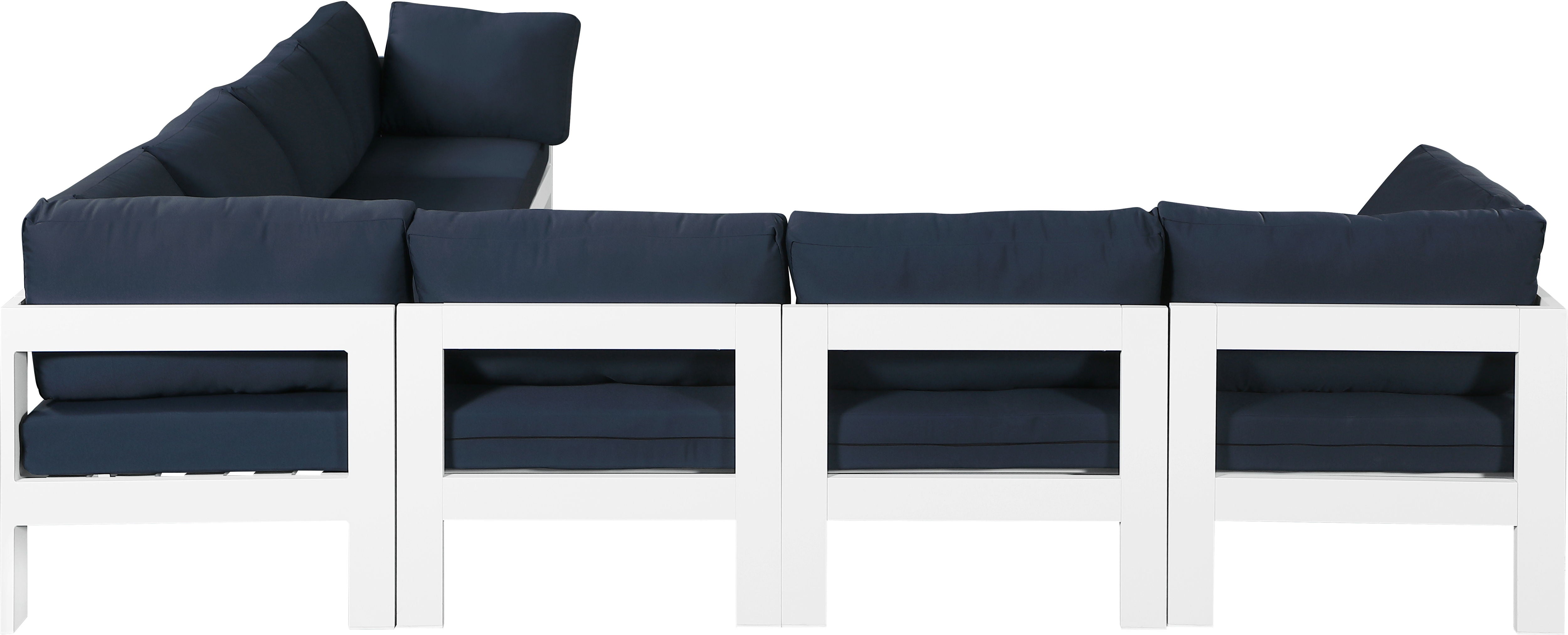 Nizuc - Outdoor Patio 7 Piece Modular Sectional With White Frame - Navy