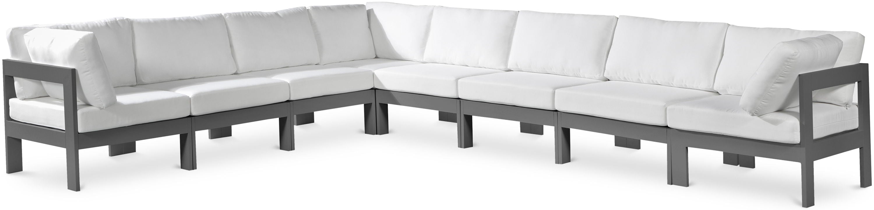 Nizuc - Outdoor Patio 8 Piece Modular Sectional With Gray Frame - White