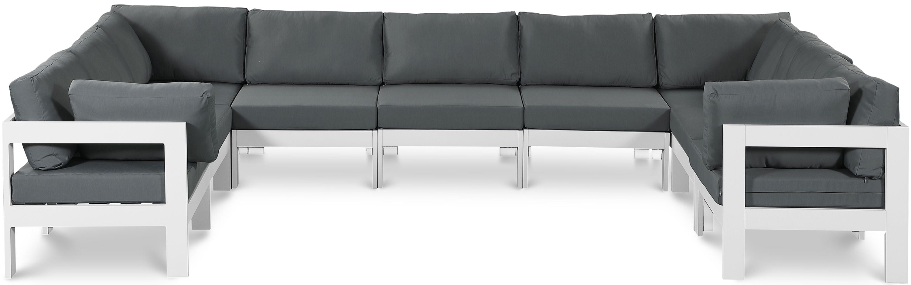 Nizuc - Outdoor Patio 9 Piece Modular Sectional With White Frame - Gray
