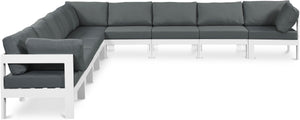 Nizuc - Outdoor Patio 9 Piece Modular Corner Sectional With White Frame - Gray