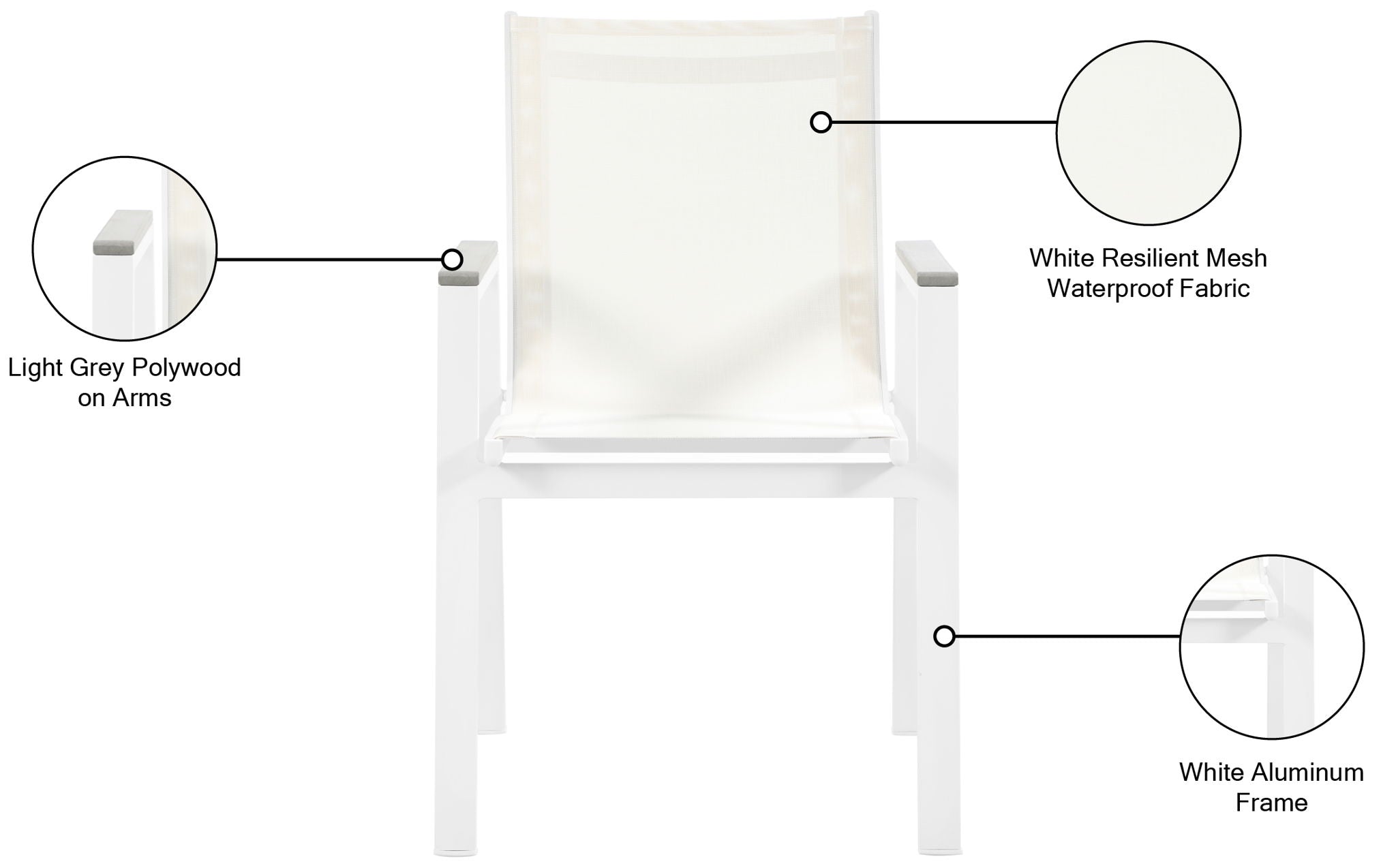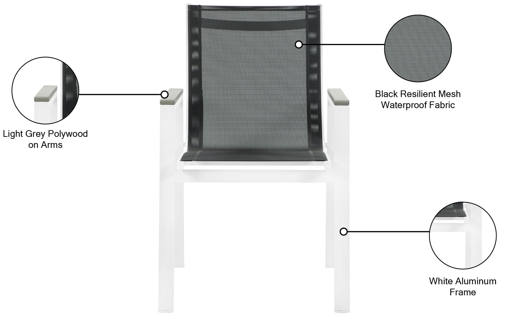 Nizuc Waterproof Fabric Outdoor Patio Aluminum Mesh Dining Arm Chair