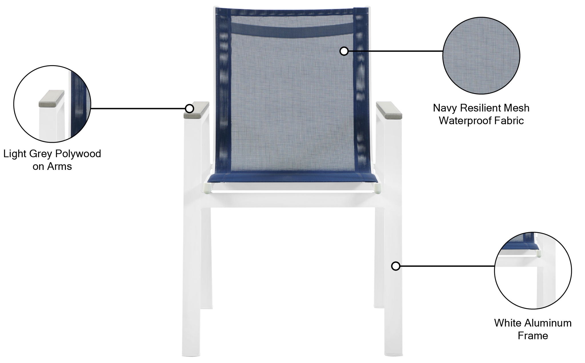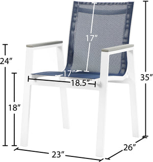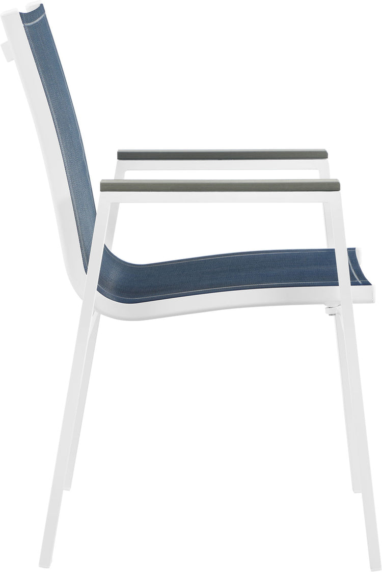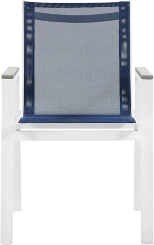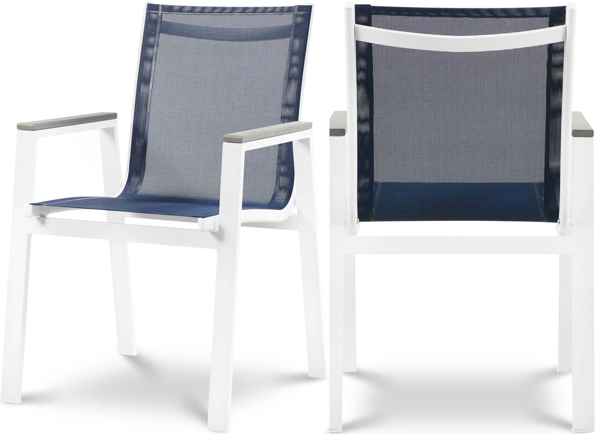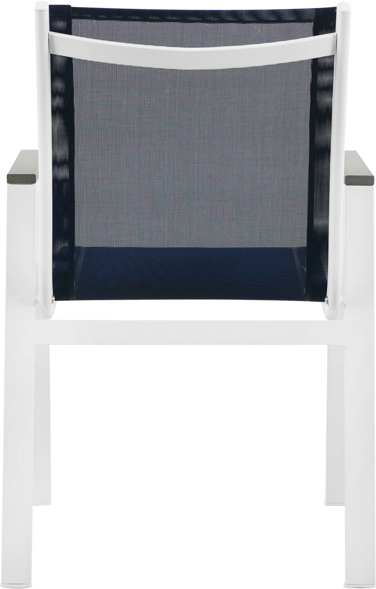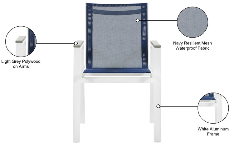 Nizuc - Outdoor Patio Dining Arm Chair With White Frame And Gray Arms (Set of 2) - Navy