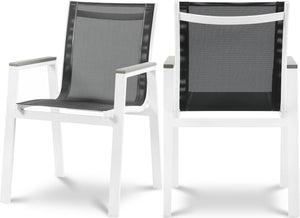 Nizuc - Outdoor Patio Dining Arm Chair With White Frame And Gray Arms (Set of 2) - Black