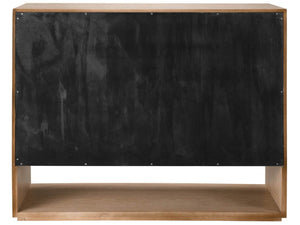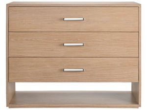 The Vista Dresser will accentuate bedroom areas with both style and function, featuring three spacious drawers, a lower open-air shelf, and a dynamic pairing of an oak finish and modern bar hardware.