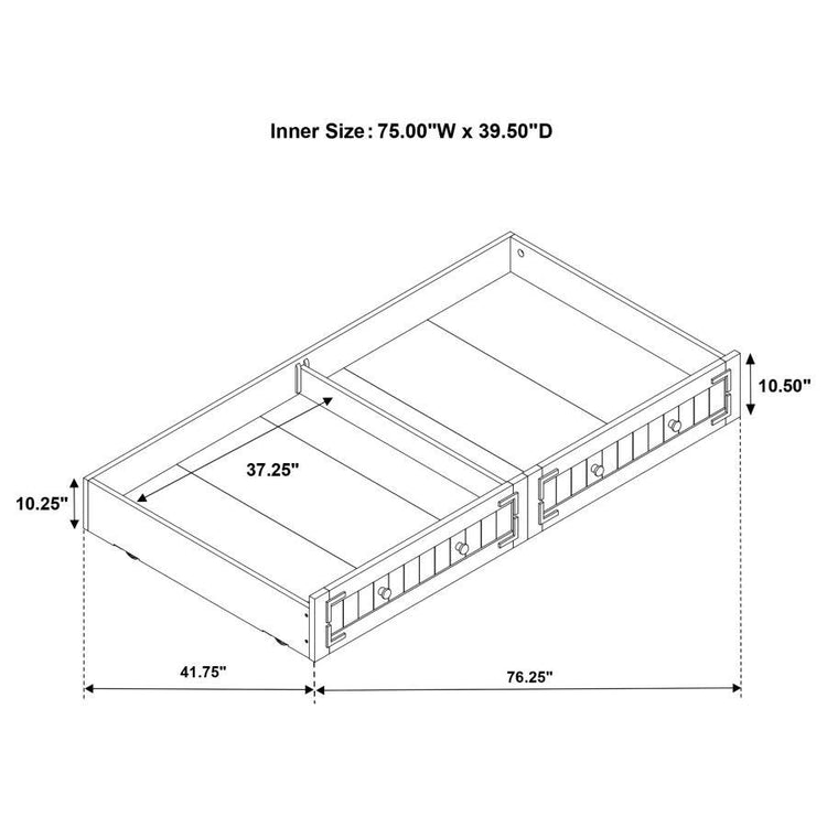 | Dimensions | 76.25"L x 41.75"D x 10.25"H |