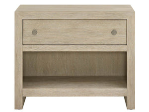 The Dockside Nightstand combines a single drawer with an open shelf space, featuring convenient built-in electrical outlets and LED lighting for enhanced functionality. This nightstand brings natural warmth to your bedside, perfectly balancing form and function.