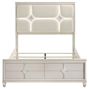 Olivia - Queen Panel Bed LED Headboard - Pearl White