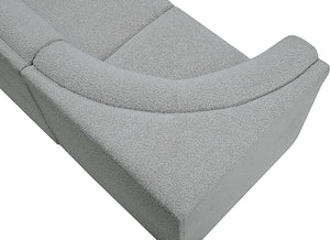 Meet the epitome of style and functionality with this Ollie boucle fabric living room sectional, part of the Ollie modular collection. A contemporary marvel, this sectional features chic and inviting rich boucle fabric upholstery, giving it a sumptuous texture that oozes elegance and luxury. Curved corners add to the visual look of the sectional while maximizing seating comfort while lounging, reading, or entertaining. Pair it with other items in the Ollie collection easily, thanks to an attachment latch underneath.