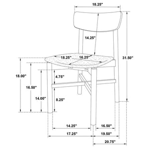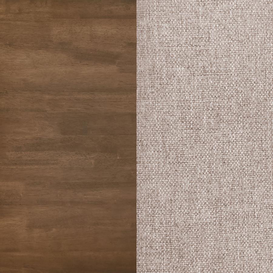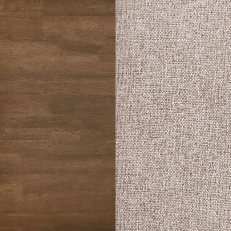 Bring a touch of simplicity and comfort to your dining space with this stylish chair. Designed with a minimalist appeal, the chair is crafted from a mix of solid wood and engineered wood for both durability and a natural aesthetic. The tan fabric upholstered seat, padded with foam cushioning, provides a soft and comfortable place to sit, making it ideal for long dinners and casual gatherings. The rounded backrest adds an organic, contemporary vibe, complementing the overall light, airy look of the chair.