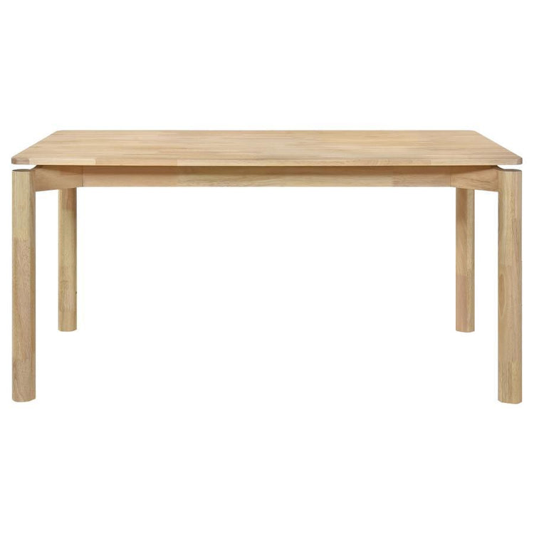 Elevate your dining space with the perfect combination of minimalist style and everyday comfort. This dining set pairs a beautifully crafted rectangular dining table with matching chairs, each constructed with solid wood and finished in a trendy tone cohesive to any room setting. The dining table offers a sturdy, spacious surface for meals, gatherings, or even work-from-home setups. Each chair features a padded foam seat upholstered in tan fabric, providing both style and comfort, while the simple yet elegant design of the set complements a variety of interior styles, from modern to transitional.