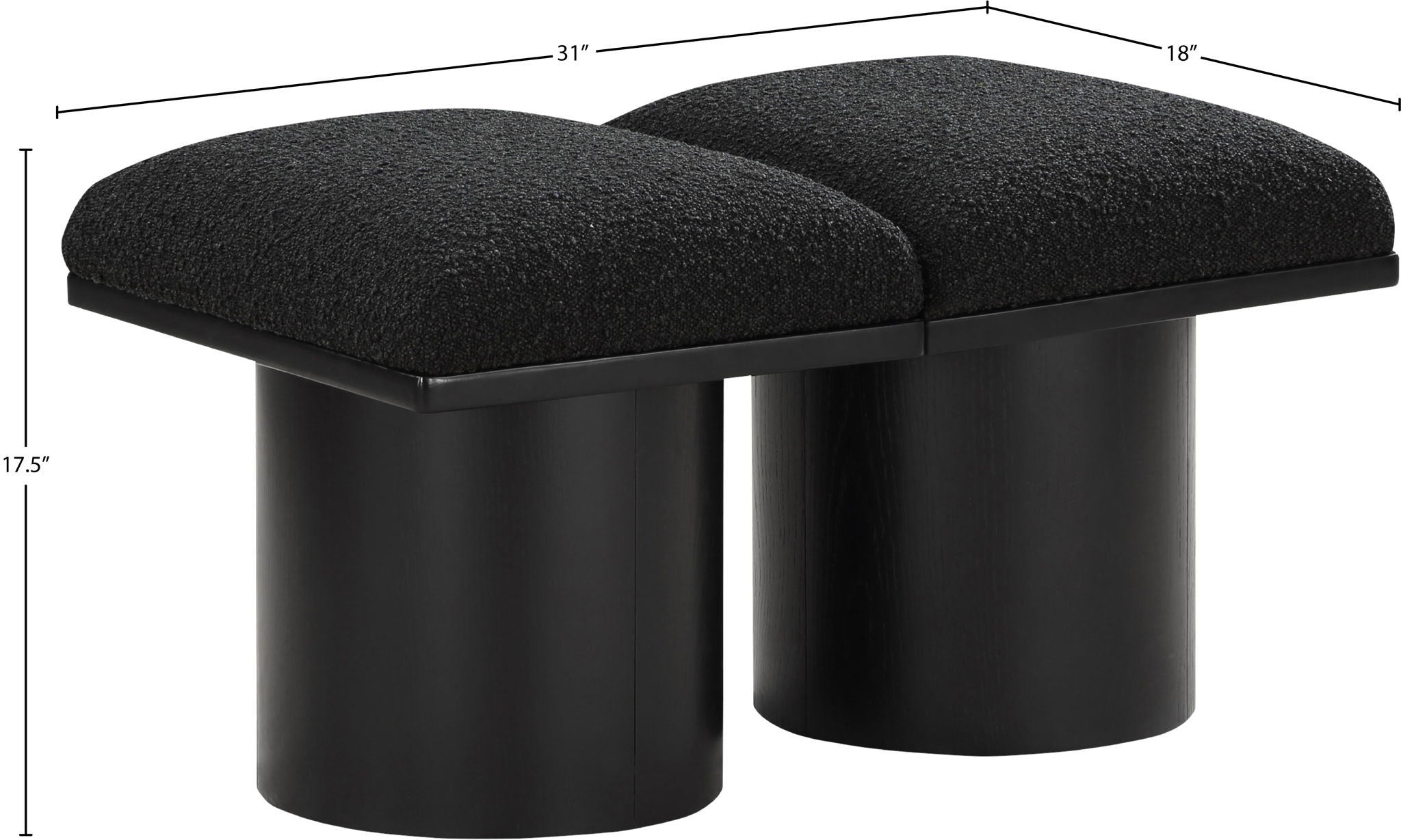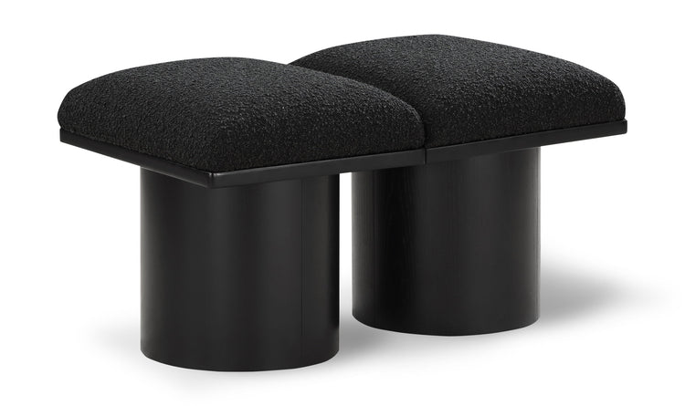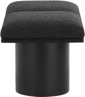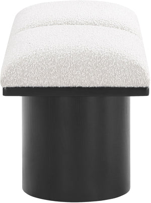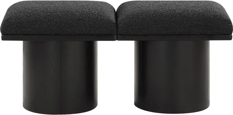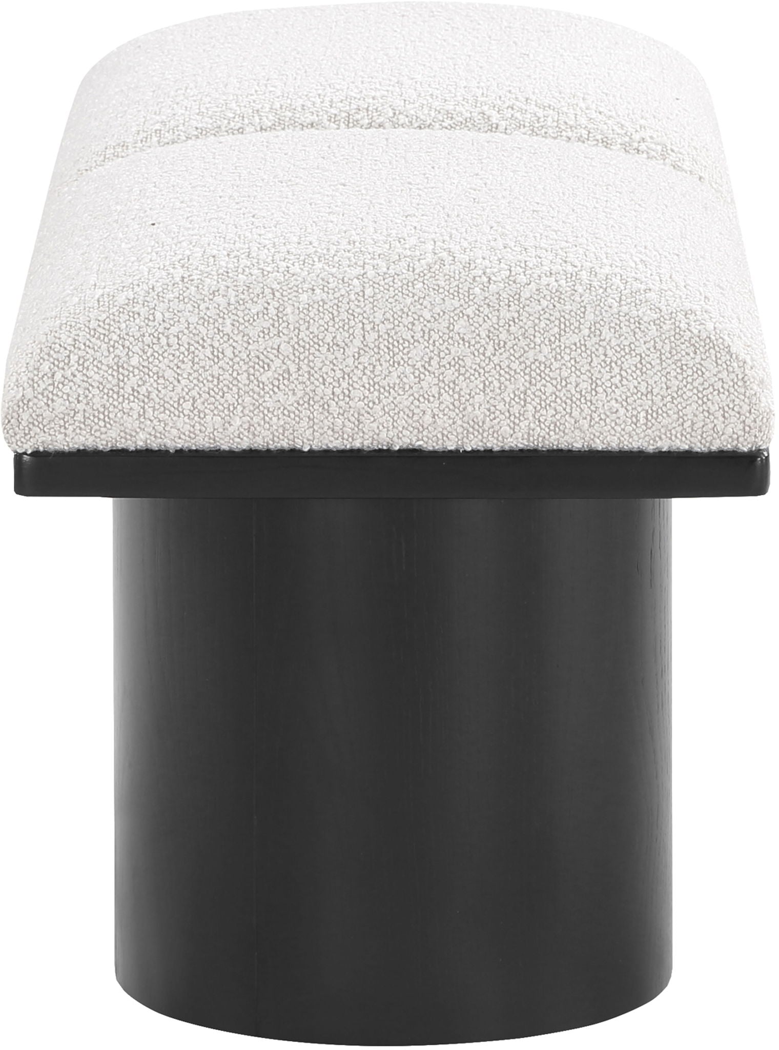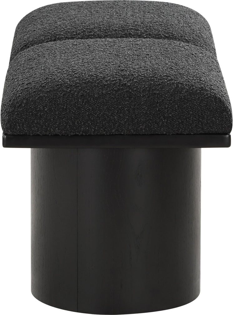 Bring valuable seating and remarkable style to your space with this Pavilion Boucle Fabric Bench, an exquisite balance of style and usability for the entryway, bedroom, and beyond. Crafted from oak veneer with a black finish, this bench has a 4-inch-thick seat cushion that's channel-tufted for a touch of luxury. The bench's columnar bases add a dash of Art Deco design, making it a captivating focal point in any room.