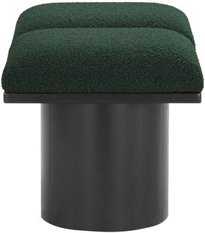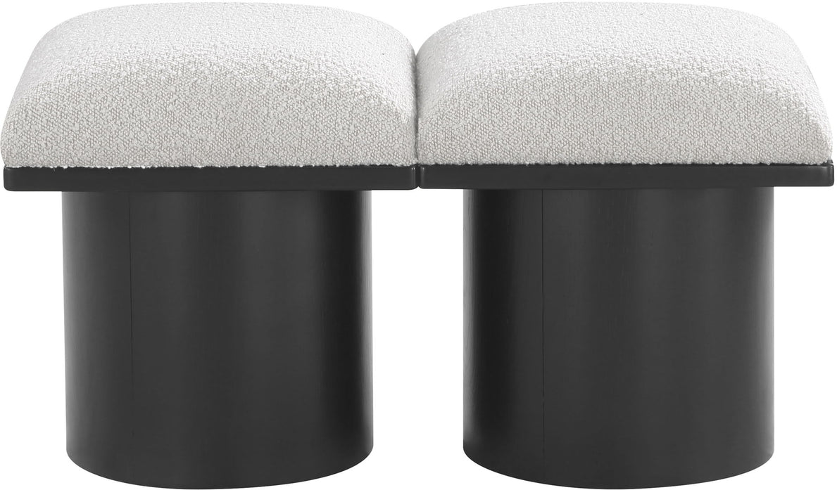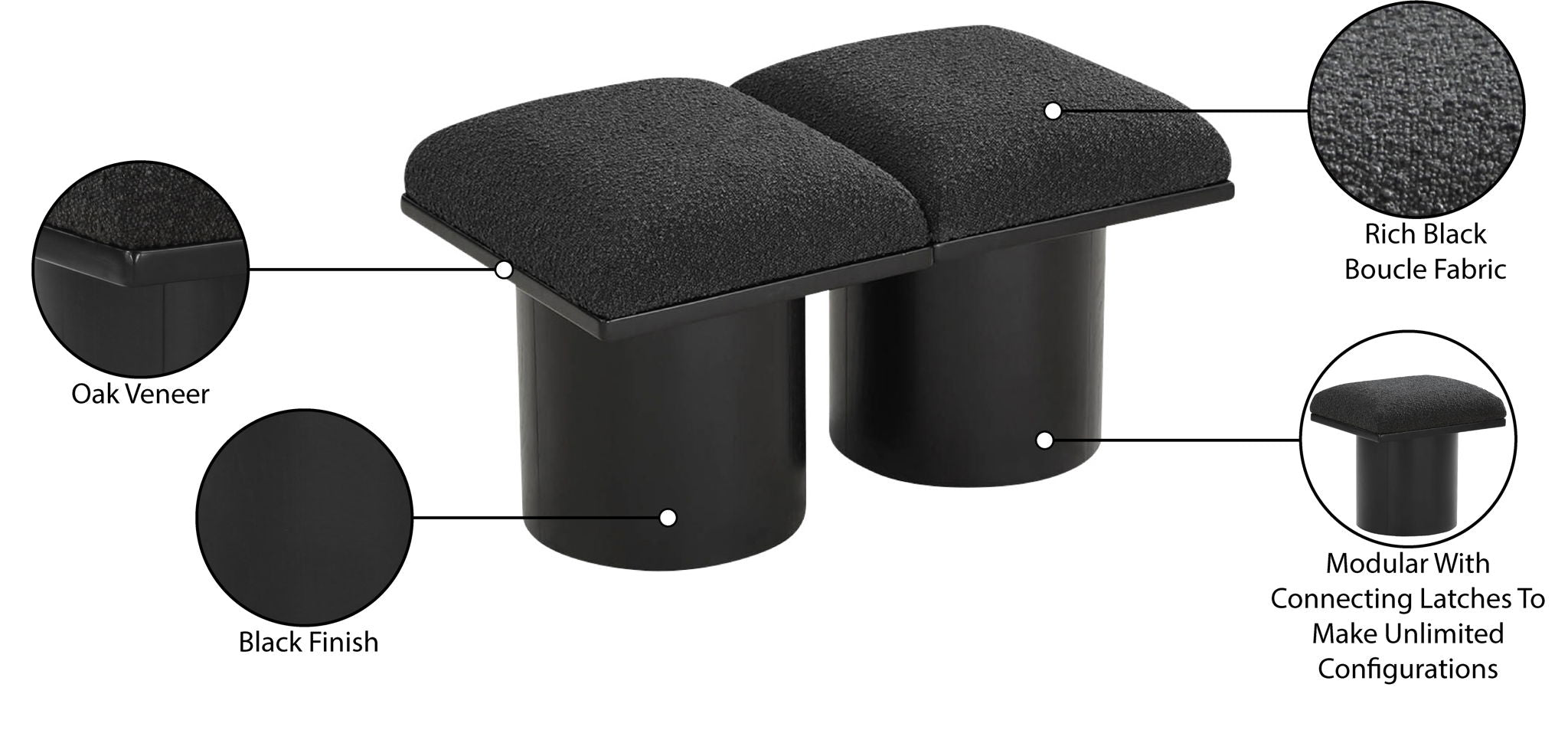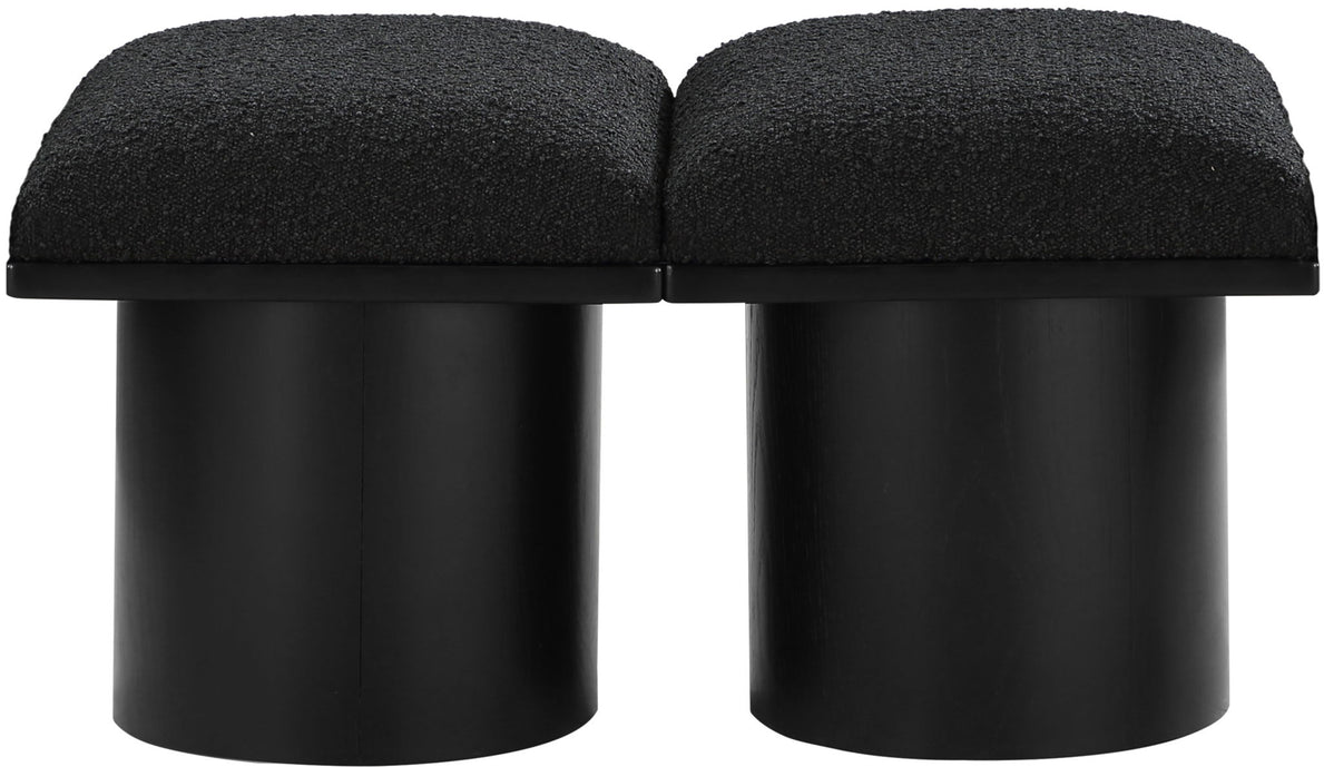 Bring valuable seating and remarkable style to your space with this Pavilion Boucle Fabric Bench, an exquisite balance of style and usability for the entryway, bedroom, and beyond. Crafted from oak veneer with a black finish, this bench has a 4-inch-thick seat cushion that's channel-tufted for a touch of luxury. The bench's columnar bases add a dash of Art Deco design, making it a captivating focal point in any room.
