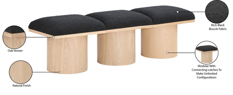 Pavilion - 46.5" 3 Piece Modular Bench With Natural Base - Black
