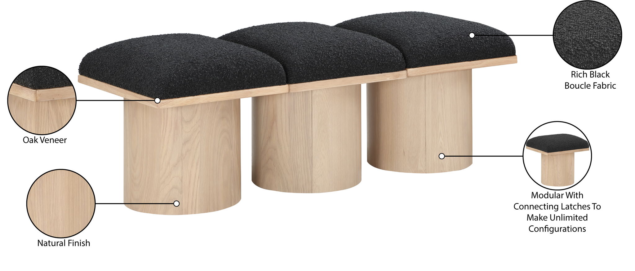 Pavilion - 54" 3 Piece Modular Bench With Natural Base - Black