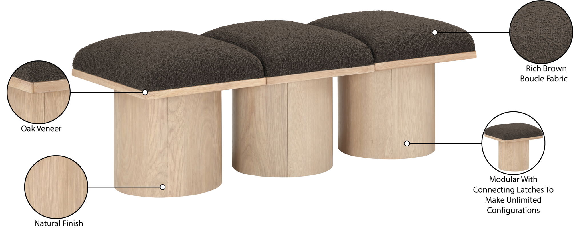 Pavilion - 54" 3 Piece Modular Bench With Natural Base - Brown