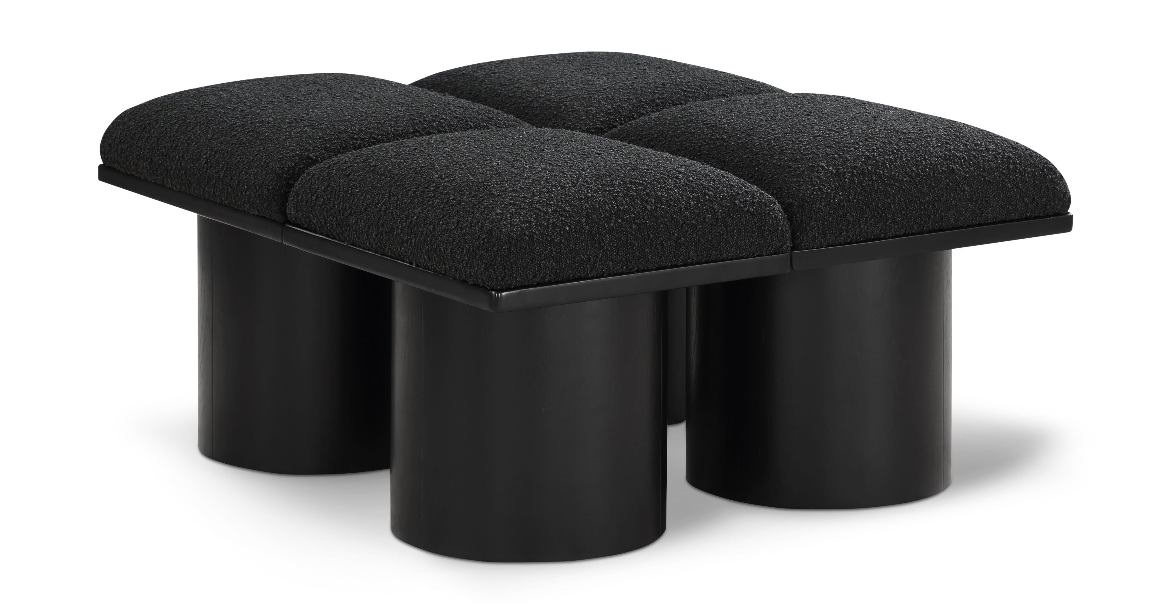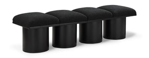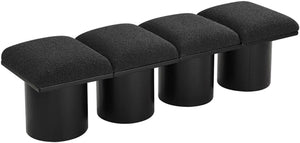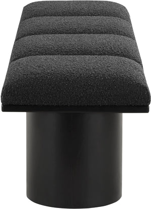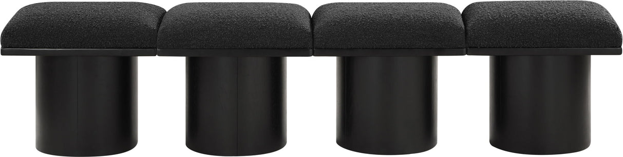 Bring valuable seating and remarkable style to your space with this Pavilion Boucle Fabric Bench, an exquisite balance of style and usability for the entryway, bedroom, and beyond. Crafted from oak veneer with a black finish, this bench has a 4-inch-thick seat cushion that's channel-tufted for a touch of luxury. The bench's columnar bases add a dash of Art Deco design, making it a captivating focal point in any room.
