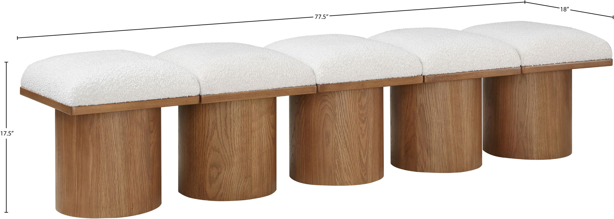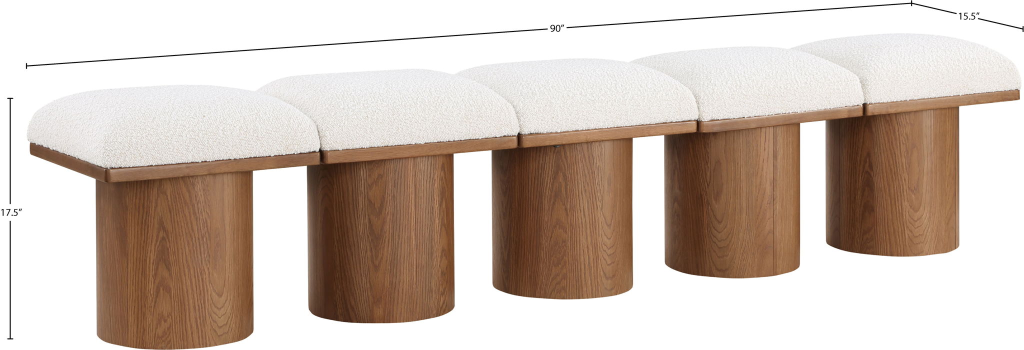 Bring valuable seating and remarkable style to your space with this Pavilion boucle fabric bench, an exquisite balance of style and usability for the entryway, bedroom, and beyond. Crafted from oak veneer with a walnut brown finish, this bench has a 4-inch-thick seat cushion that's channel-tufted for a touch of luxury. The bench's columnar bases add a dash of art deco design, making it a captivating focal point in any room.