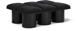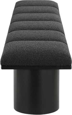 Bring valuable seating and remarkable style to your space with this Pavilion Boucle Fabric Bench, an exquisite balance of style and usability for the entryway, bedroom, and beyond. Crafted from oak veneer with a black finish, this bench has a 4-inch-thick seat cushion that's channel-tufted for a touch of luxury. The bench's columnar bases add a dash of Art Deco design, making it a captivating focal point in any room.