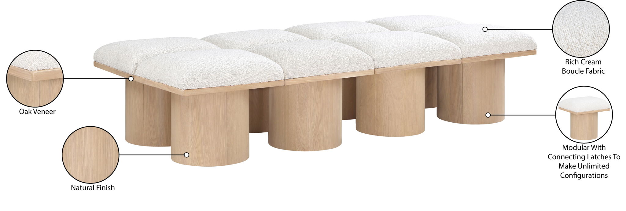 Pavilion - 72" 8 Piece Modular Bench With Natural Base - Cream