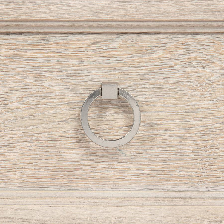 Softly structured and beautifully balanced, this six-drawer dresser brings timeless charm to the bedroom. Framed with clean lines and stepped trim, it offers generous storage behind a refined facade. The washed oak finish reveals natural wood grain, while polished nickel ring pulls add a hint of shimmer. Crafted from poplar, oak veneer, and engineered wood, it brings enduring grace and practical elegance to daily living.