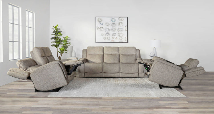 Penfield offers a remote control for a zero-gravity recline, power headrest, lumbar support, and heat and massage features for added relaxation. Made from durable and soft 100% polyester fabric, the Penfield has stylish two-tiered track arms. The loveseat features a console with stainless steel cup holders and a power station. With comfortable bucket seats, the Penfield combines style and technology for a modern look for the home.