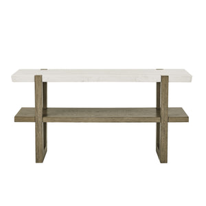 Elevate your space with the Marble Top Table, a stunning accent piece for any room. Crafted from veneers and hardwood solids, it features a striking white marble top paired with weathered solid wood legs, adding sophistication to your decor. With a built-in shelf for display or storage, and a bold, substantial frame, this table offers both functionality and elegance, making it a standout addition to your home.