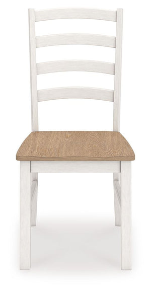 Busy breakfasts and family dinners get a dose of modern farmhouse flair with this dining chair. Its two-tone finish contrasts a light butcher block hue with an antiqued white frame for an utterly charming effect. A contoured seat elevates the comfort level. Complete with a ladderback design, it's an effortless seating solution with chic character.