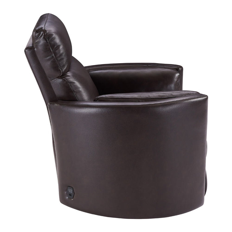 Fashionable and functional, this stylish Power Swivel Glider Recliner’s swivel feature will ensure you never miss any of the action or conversation. Perfect for relaxing at the end of a long day, this model features a soothing gliding motion and smooth power reclining for ultimate comfort.