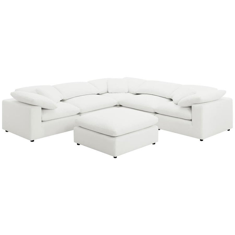 Create the perfect configuration for your modular sectional with a modern armless chair. It features neutral water-resistant boucle upholstery for an on-trend look and feel that works in a wide range of living spaces. The armless chair connects with additional chairs or corners, creating a custom sectional setup in your living room. Foam cushions pair with feather blend for exceptional comfort and a plush feel you'll love when lounging. A loose pillow back completes the look.