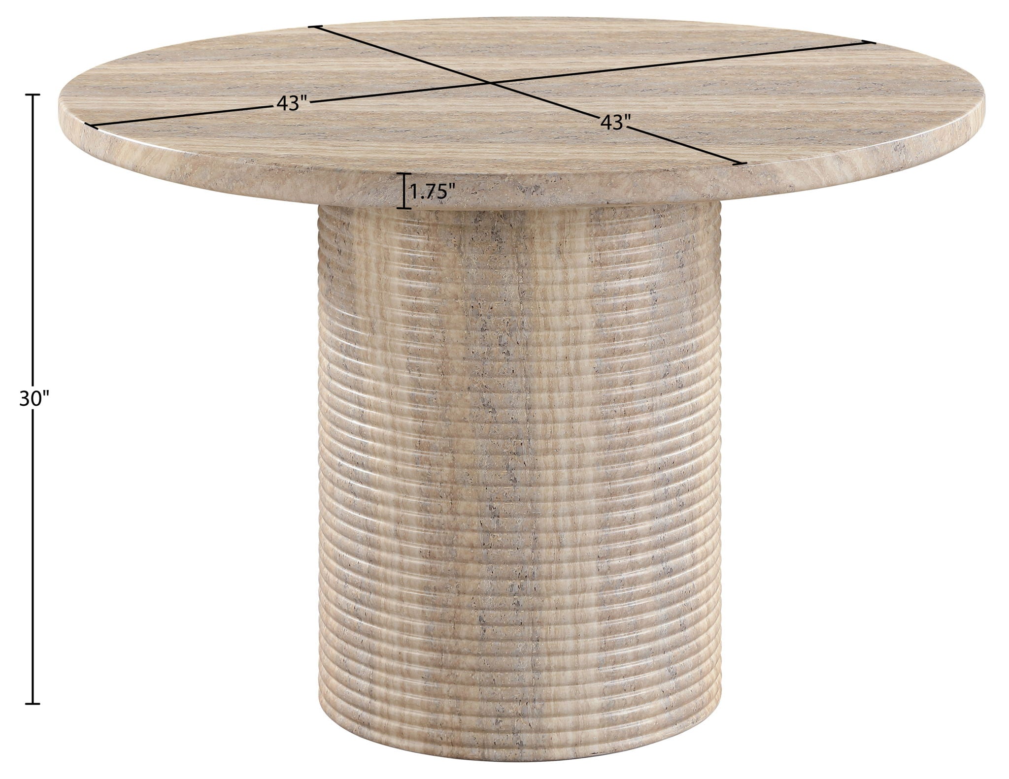 - Fluted Concrete Table in Travertine Finish